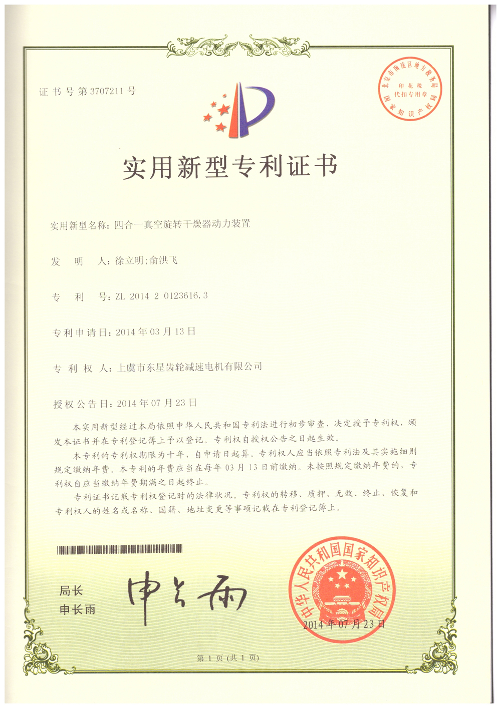 四合一真空旋轉(zhuǎn)干燥器動(dòng)力裝置