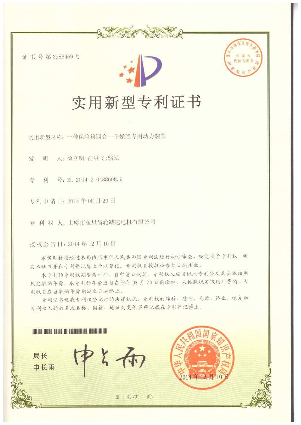 一種保險(xiǎn)粉四合一干燥釜專用動(dòng)力裝置